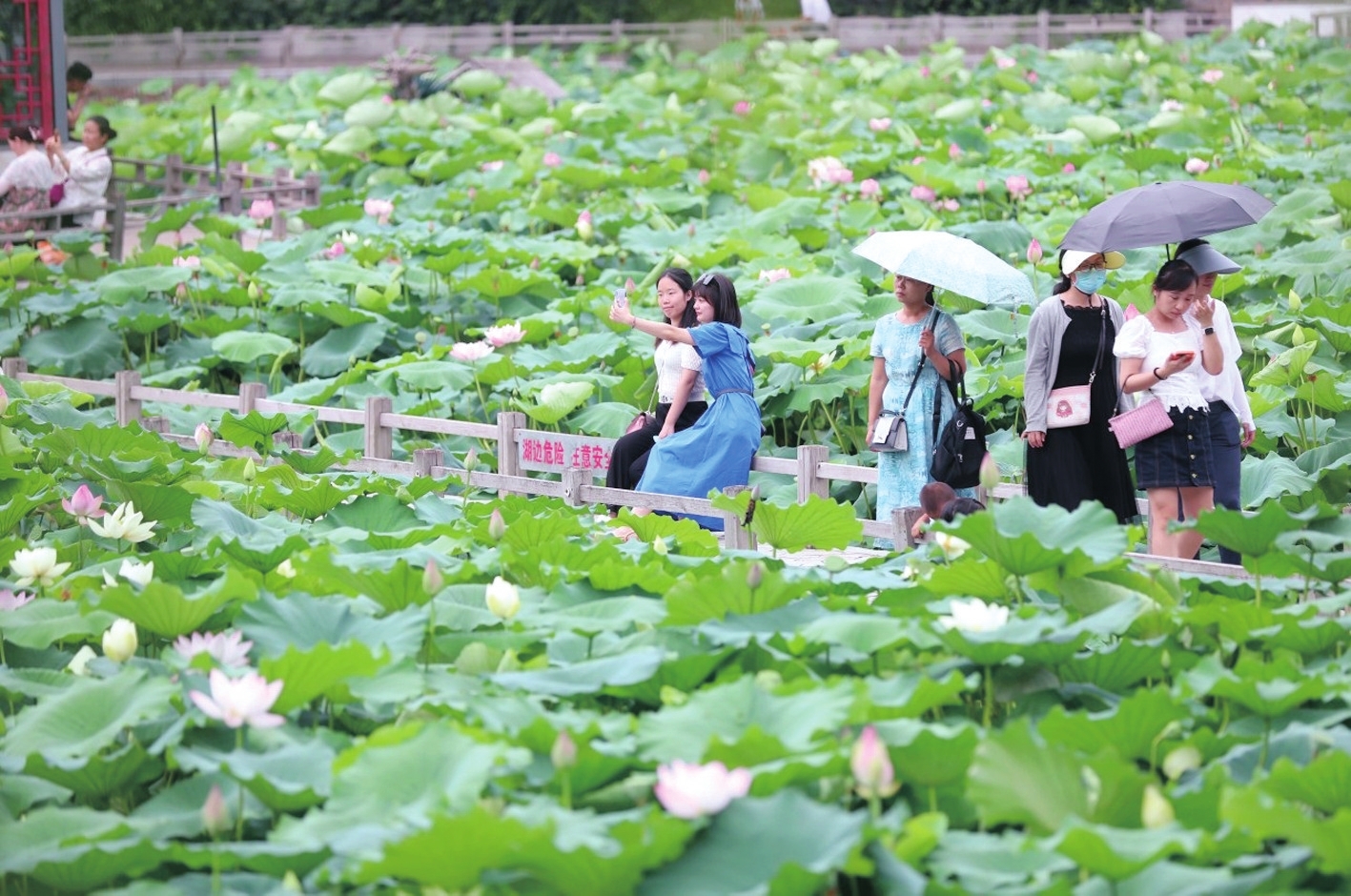 七一前夕,郑州紫荆山公园荷花展拉开帷幕。