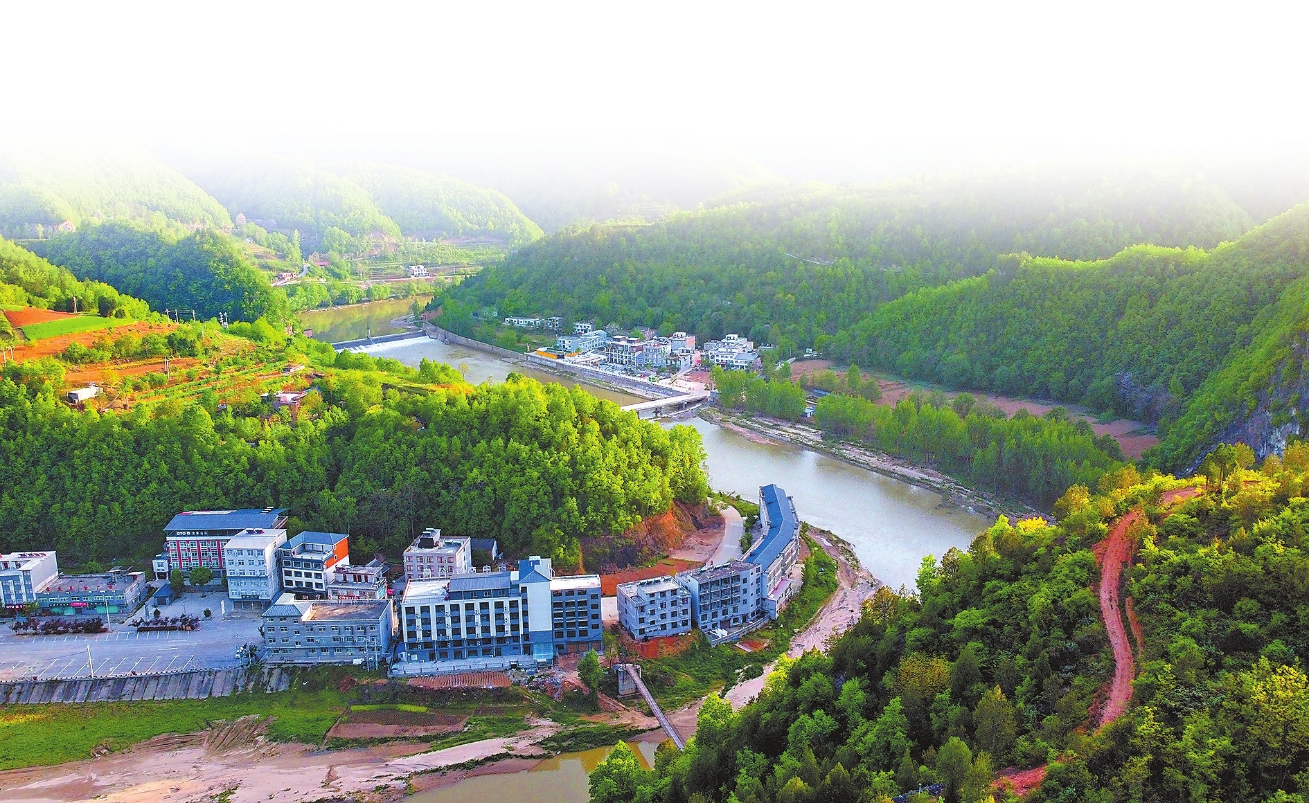 卢氏县汤河乡及双龙湾镇掩映在山间的民宿吸引了不少游客。陈更生摄