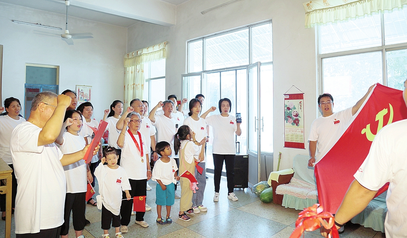 党的百年华诞前夕,在孟州市化工镇贺庄村该市纪检监察干部张庆九家中,一场“学党史念党恩听党话传家风”家会活动正在进行,他89岁高龄的母亲、老党员刘桂荣,接过“光荣在党50年”纪念章后激动地说。