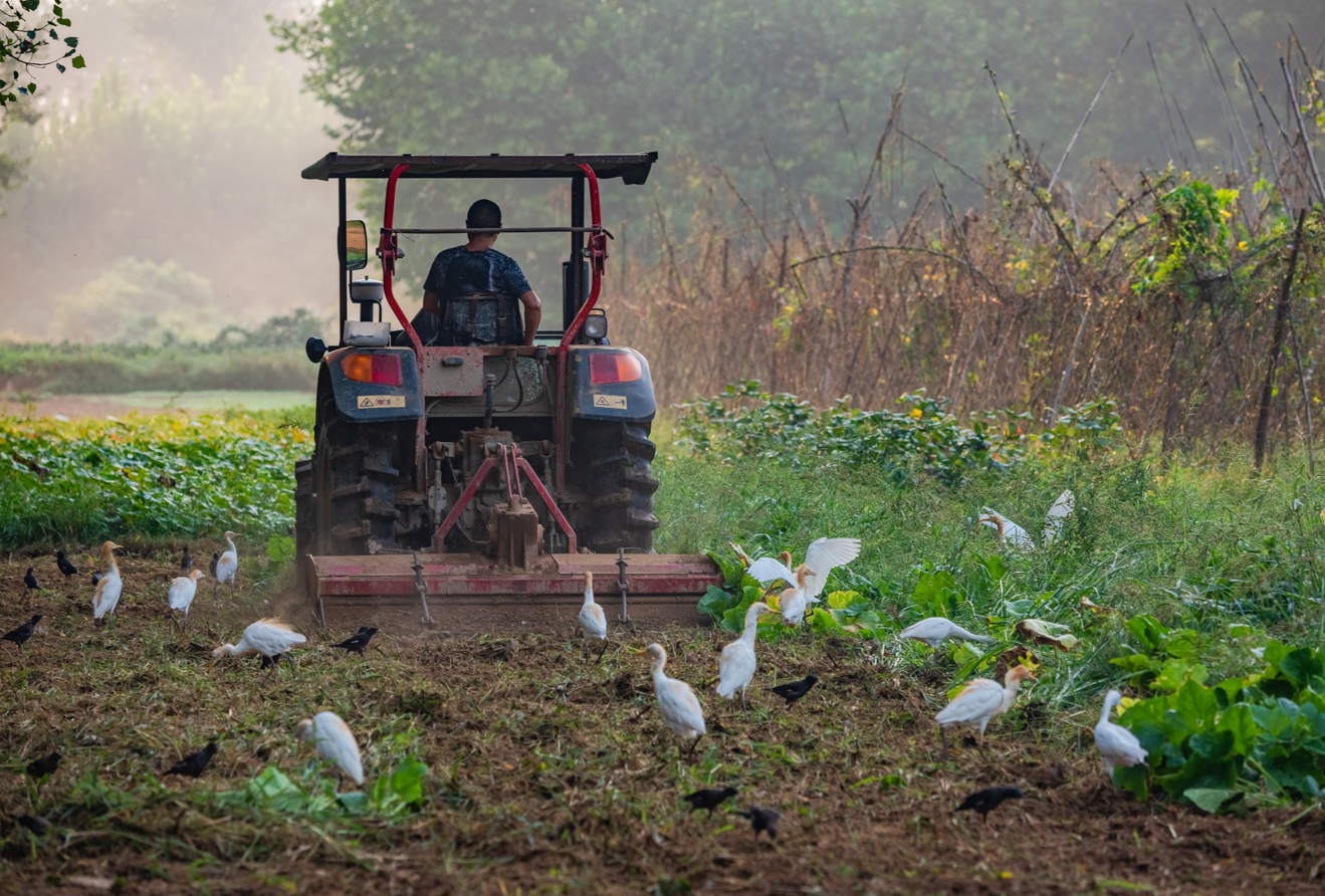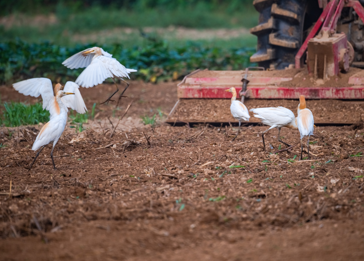 随着生态环境变好,在光山县的乡野田间,经常可以看到成群的“生态鸟”白鹭翩翩起舞。尤其在马湾开始种萝卜的时节,成群的白鹭跟随在旋耕机后面,觅食新翻泥土中的虫子,呈现一派和谐生态的农耕图象。