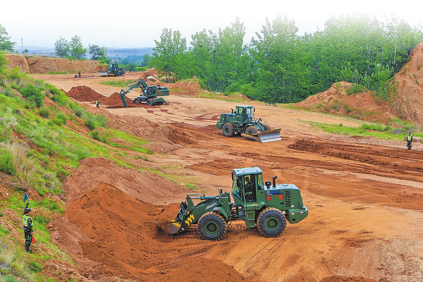 7月18日,武警第一机动总队驻豫某支队官兵正在进行抢险救援演练。入汛以来,该支队扎实开展工程机械训练,全力做好各项应急救援准备工作。本报记者王铮摄