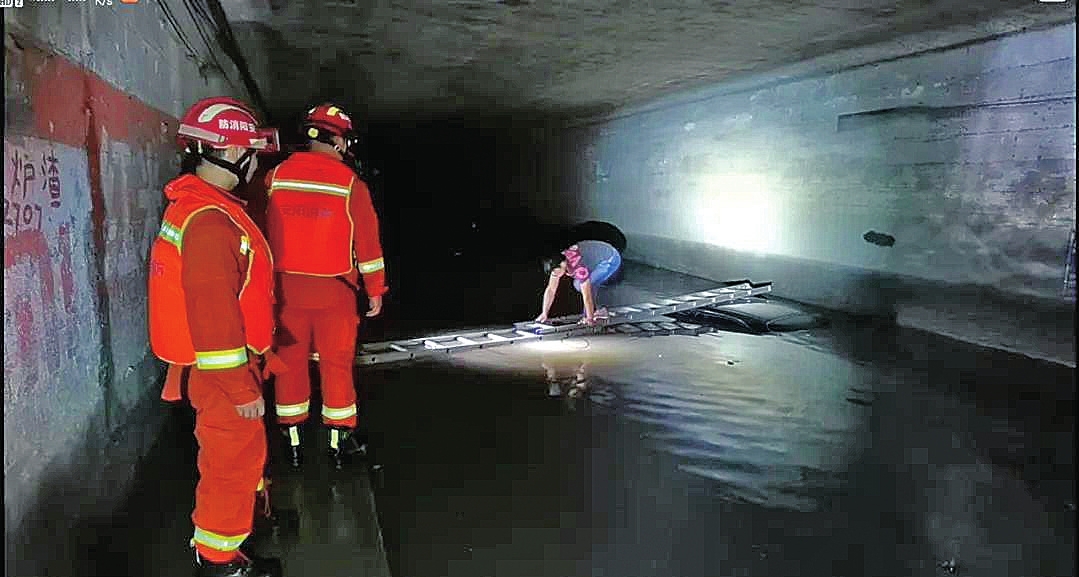 18日22时55分,一名男子驾驶汽车穿过安阳市彰德路与015县道交叉口的涵洞时,车辆被淹,一人被困车顶。消防救援人员到场后将其转移至安全处。