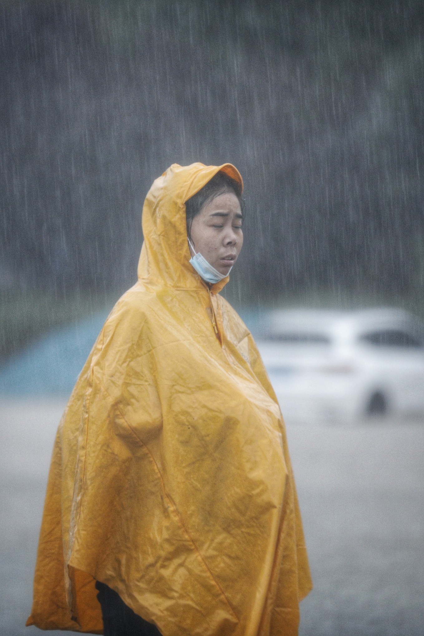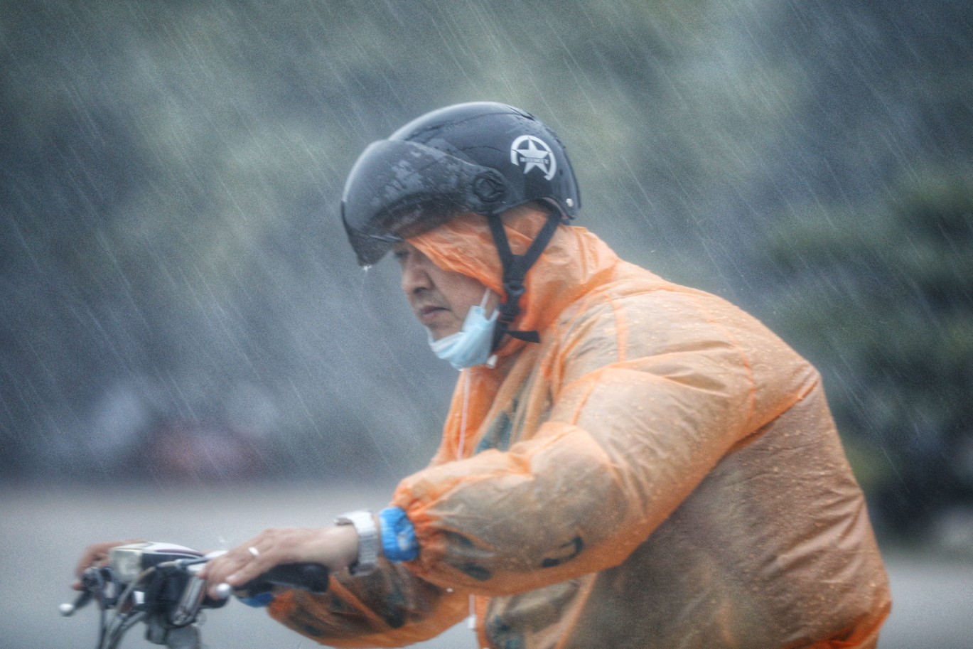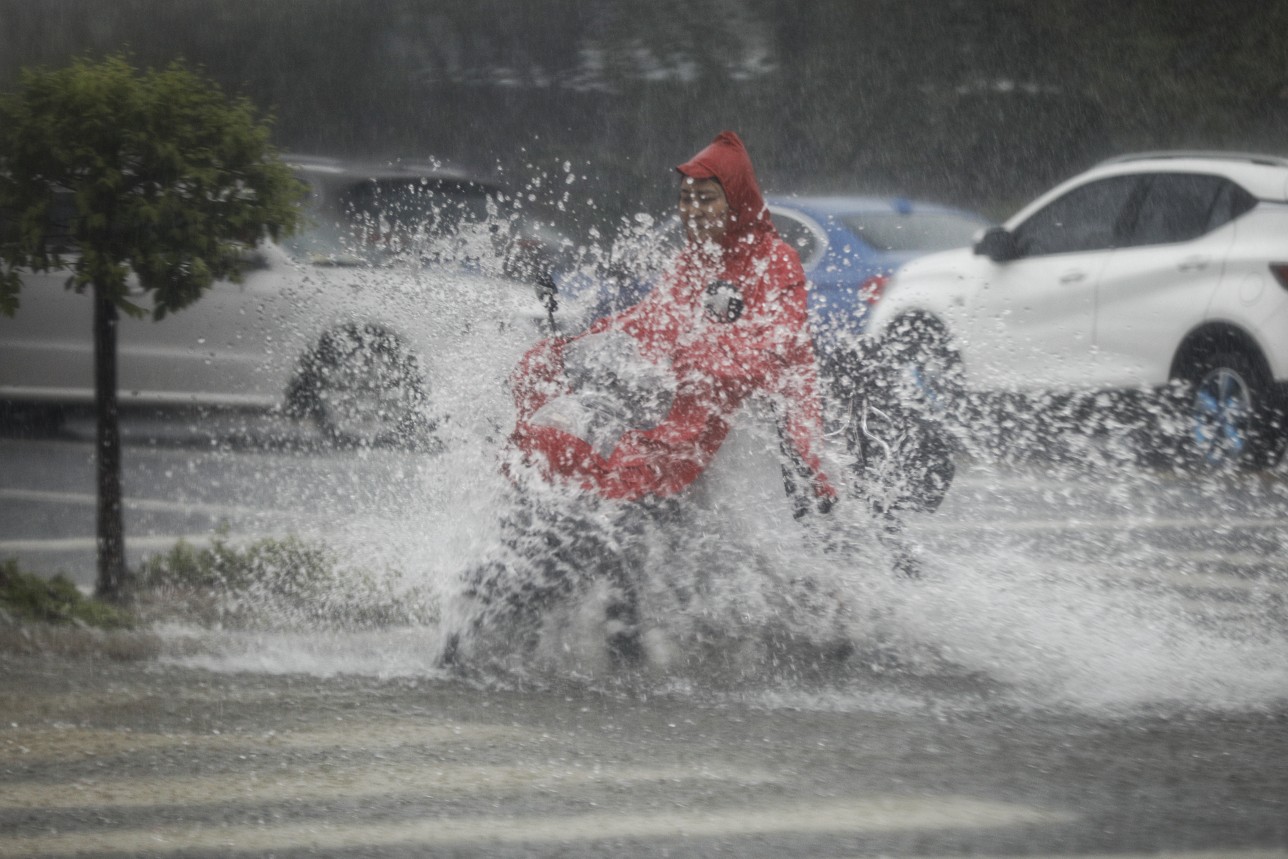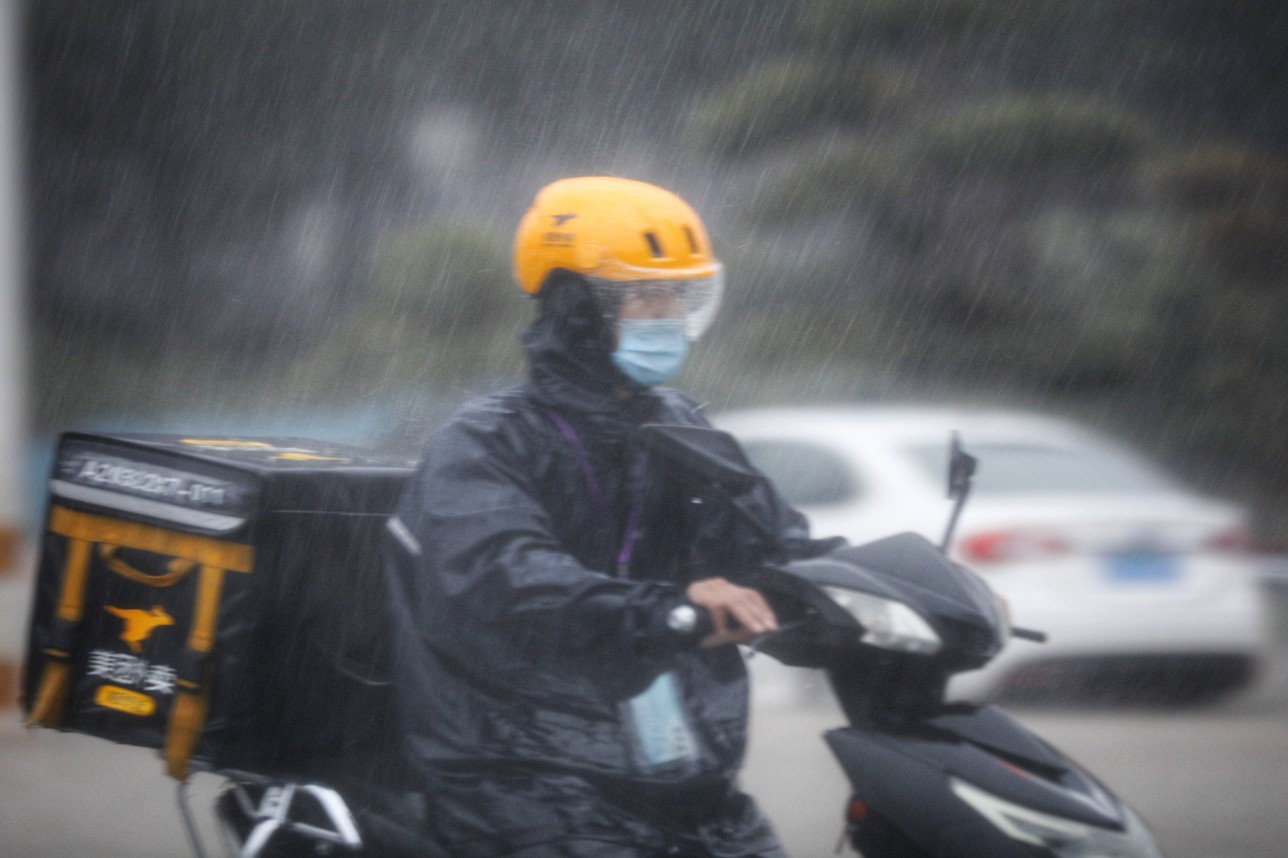外卖小哥雨中穿行