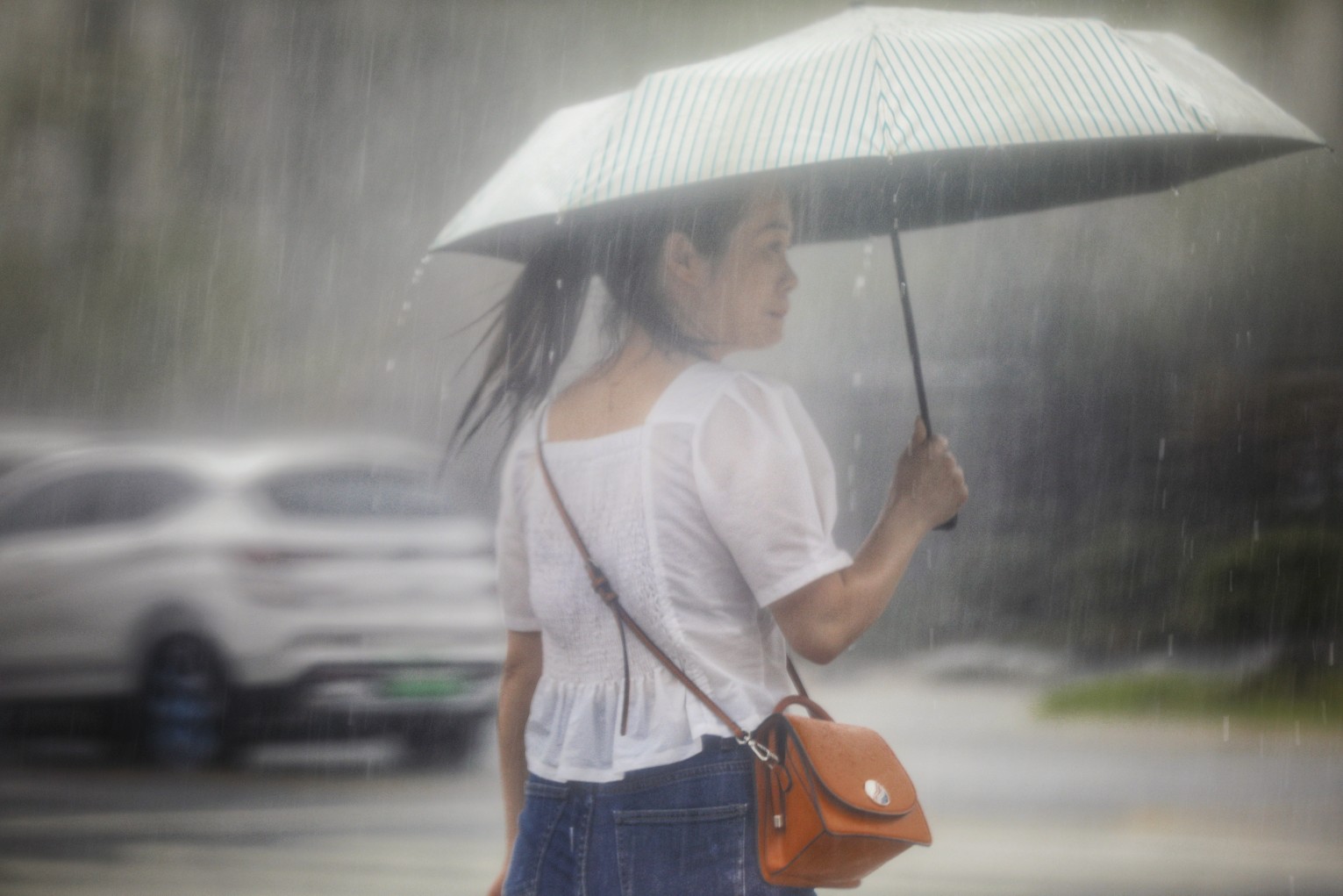 行人雨中穿行