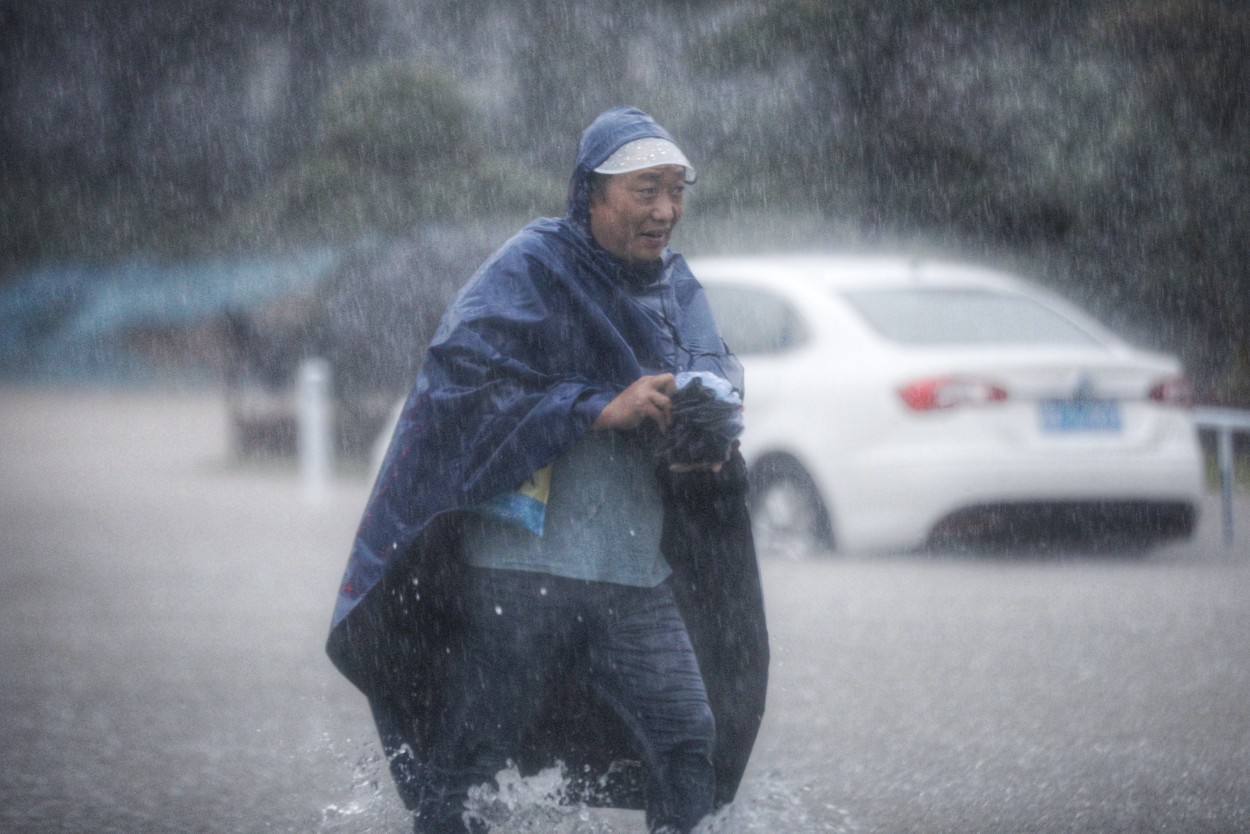 行人涉水前行