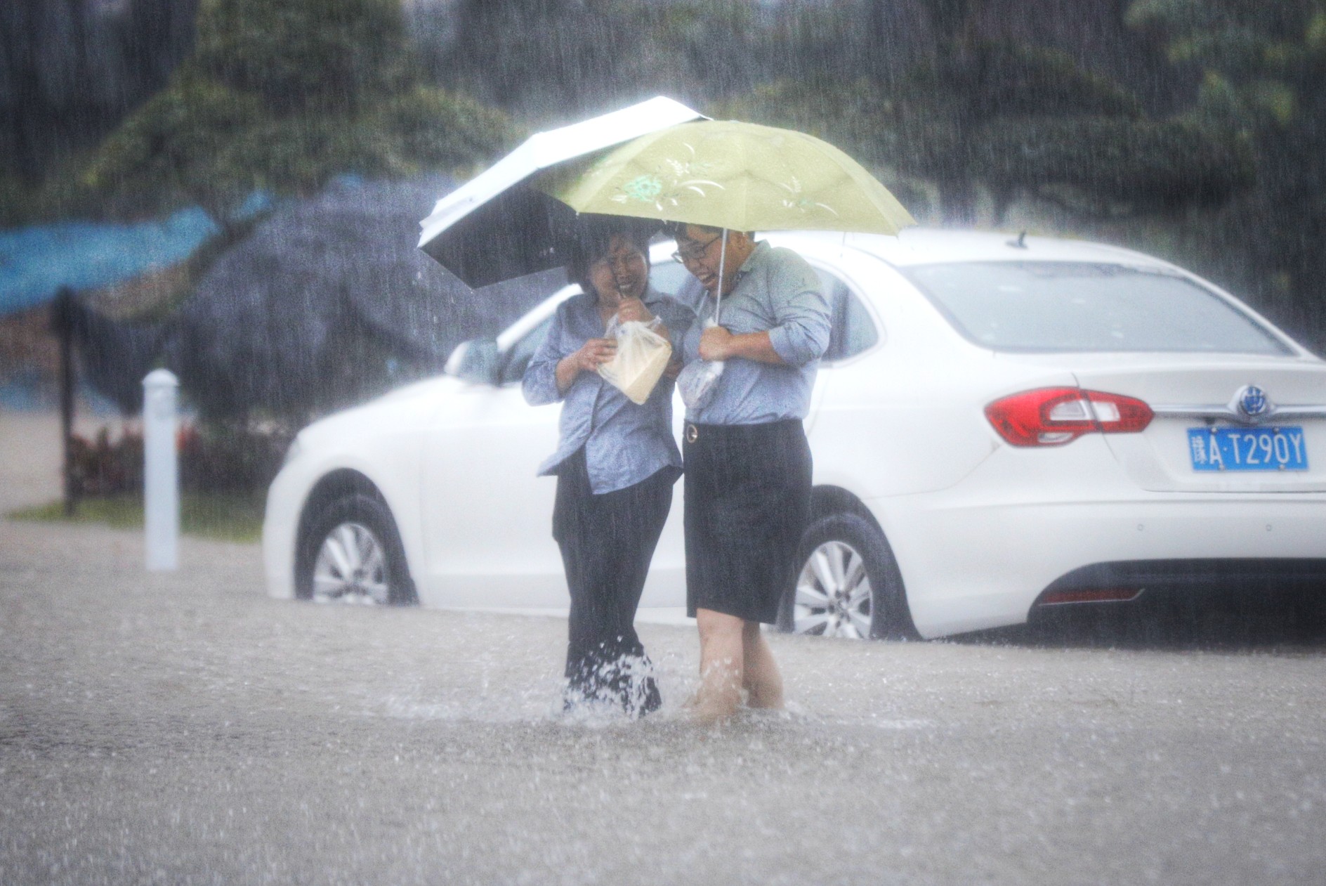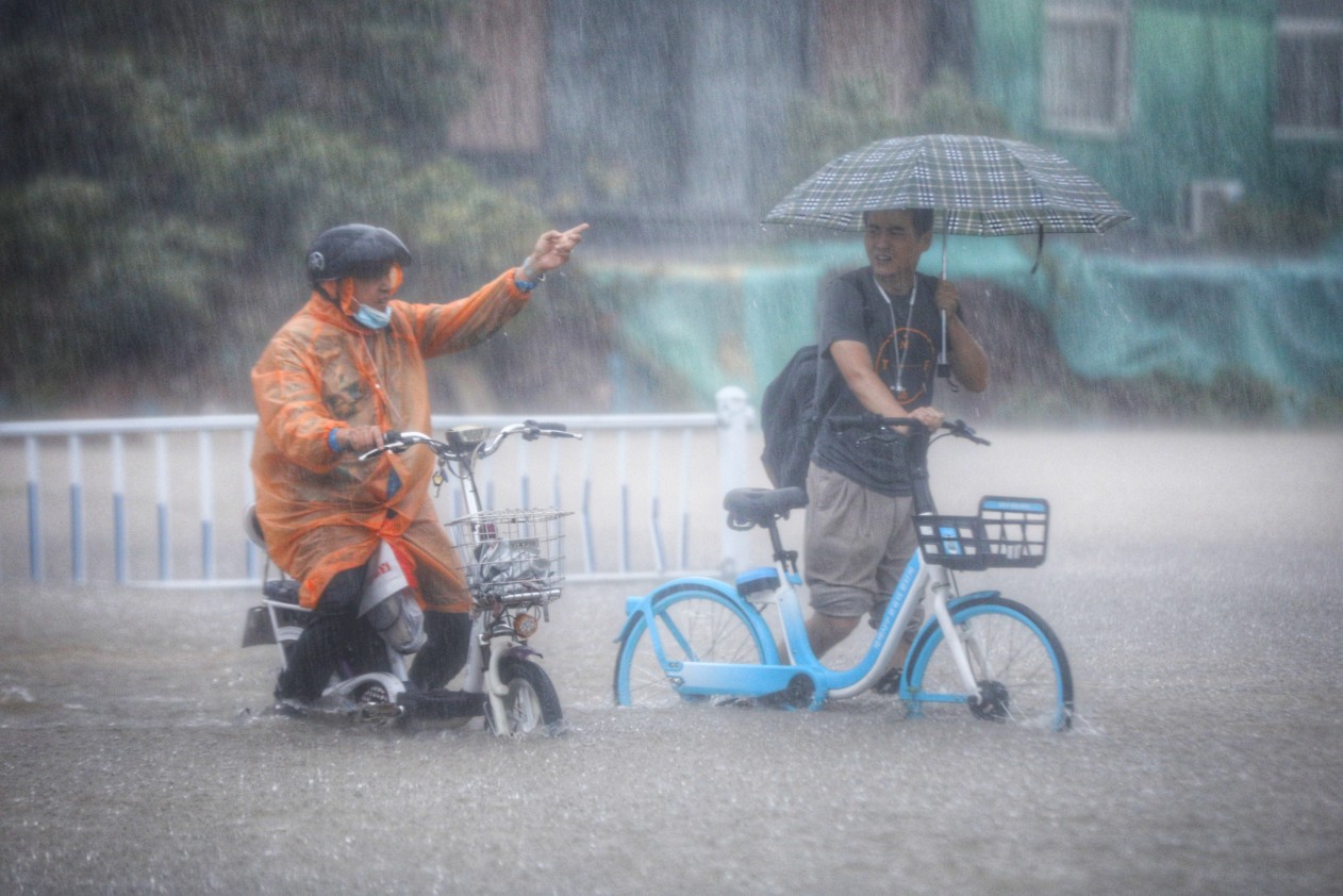 电动车涉水前行