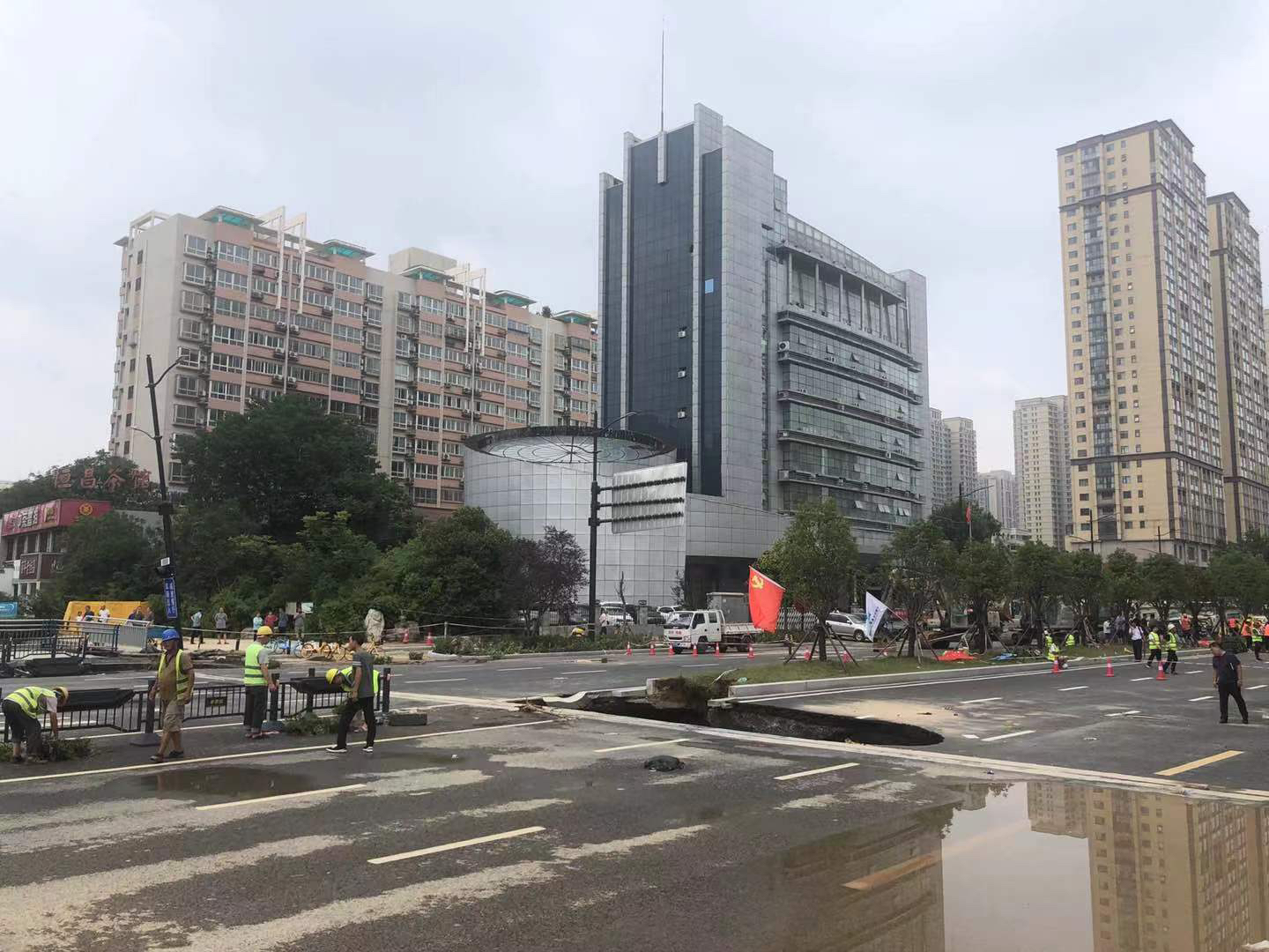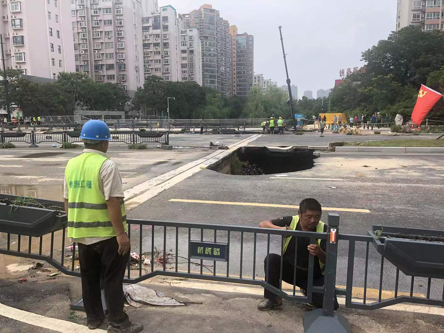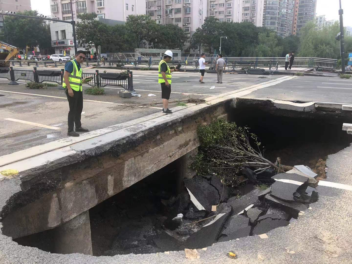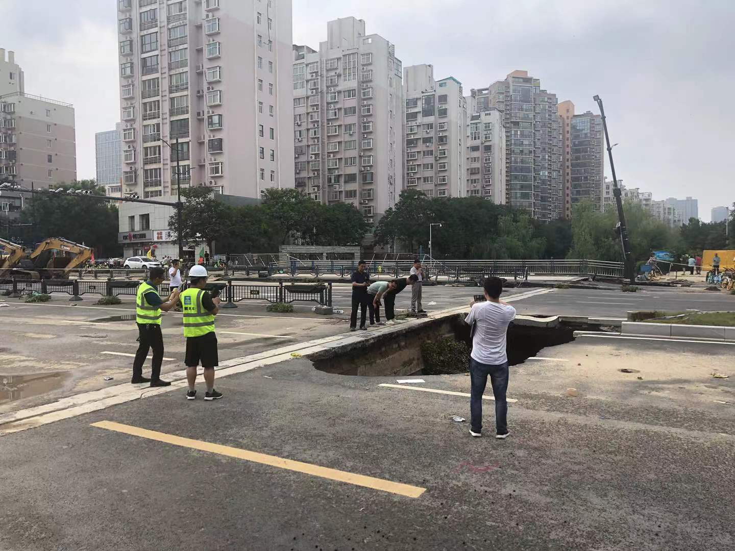 大河网记者来到现场发现,附近已被围挡拦住,桥边有一处面积约为十几平方米的路面塌方,下面是水流湍急的金水河。现场已有不少施工人员和车辆正在进行抢险作业。大河网记者也提醒市民,出行注意避让此段。
