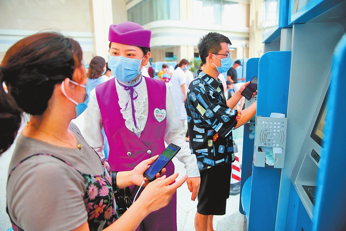 7月26日,郑大一附院河医院区门诊大厅基本恢复,就诊秩序井然。本报记者王铮摄