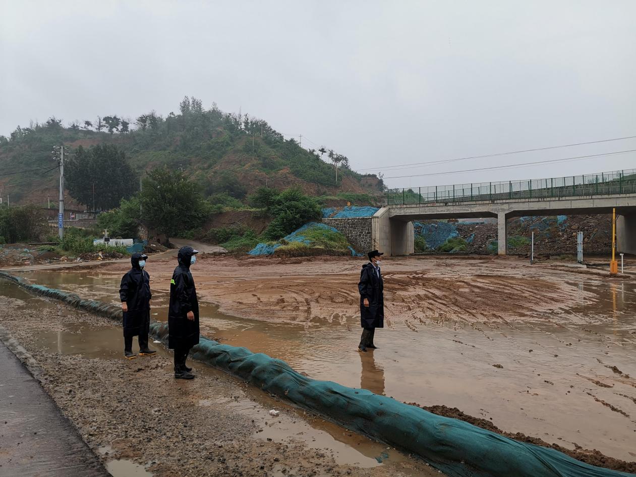 22日上午,郑州市公安局巩义市局小关派出所民警实地察看防汛重点部位区域内人员疏散和山体情况。