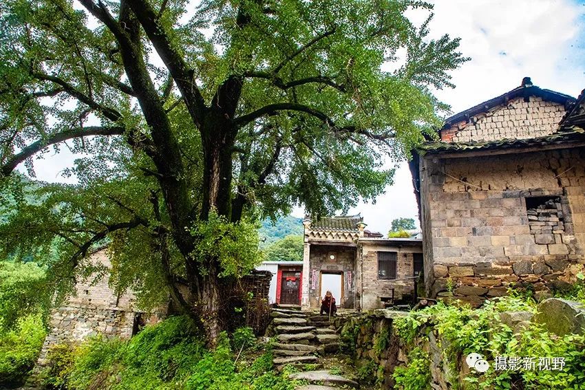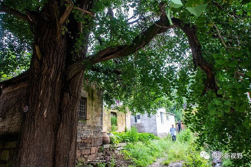 古房子,老门楼,石板路边长了一棵500年的银杏树。