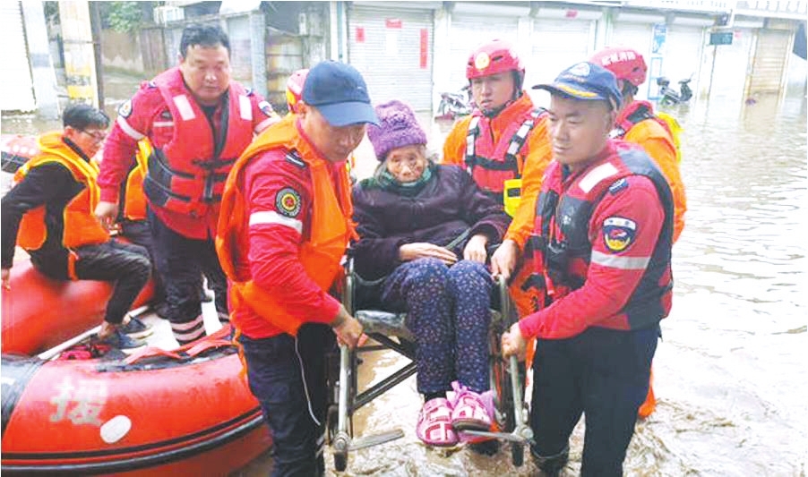 洛阳神鹰救援队偃师大队队员们在转移被困群众