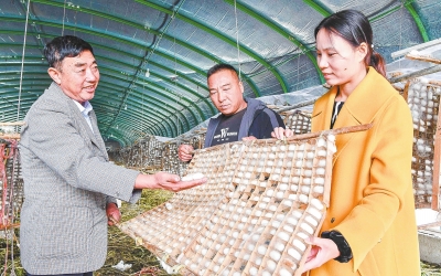 10月15日,汝州市焦村镇邢村万亩蚕桑创业基地,负责人兼技术员赵国财(左一)在指导养蚕户采收蚕茧。该镇种植桑树4000余亩,从业农户达107户,每亩桑树收入5000余元。