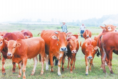 近日,光山县晏河乡河川村村民在河川大草原放牧本地黄牛。近年来,该村积极争取养殖贷款贴息项目,引导农户因地制宜发展养牛业,采取“特色产业+基地+农户”的经营模式,以集中养殖为主、分散养殖为辅的方式,让村民在家门口靠养牛走上致富路。谢万柏摄
