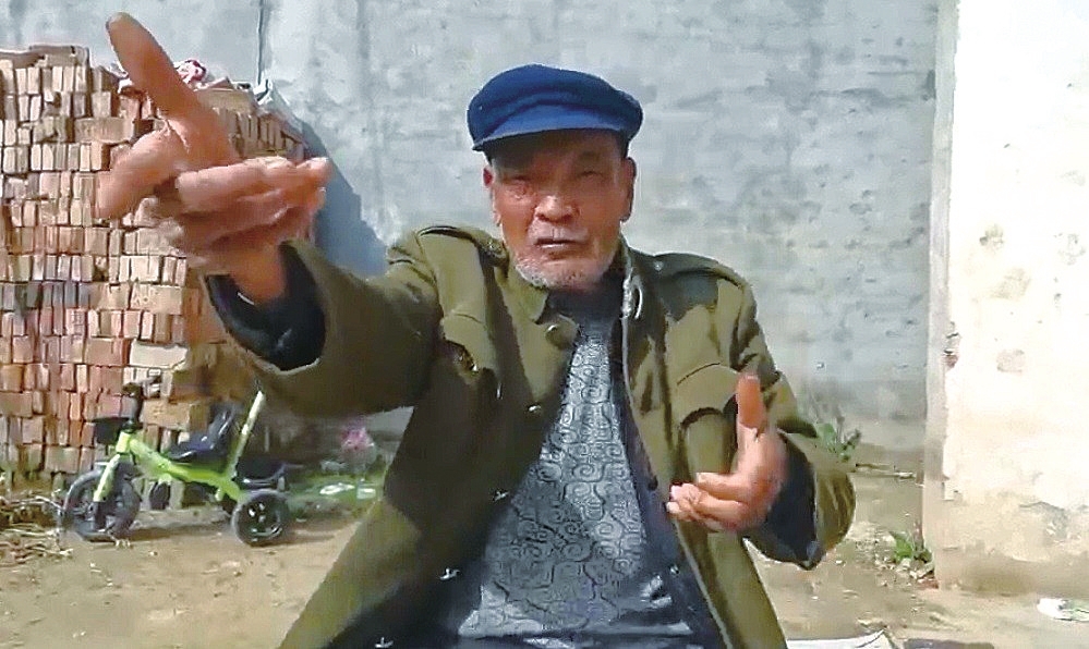 老人激动地挥动着粗糙的双手,仿佛有着说不完的话。