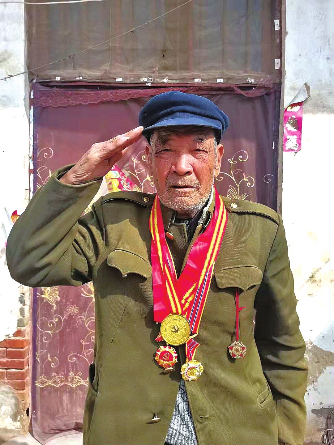暖阳高照,周口市淮阳区新站镇雷草楼行政村的一处普通乡村院落中,牛德宣穿着一件褪色的、起球的黄色军装,拄着一根拐杖,蹒跚着从平房的堂屋里走出来。胸前,包括“抗美援朝纪念章”在内的几枚奖章,在深秋的阳光下熠熠生辉。