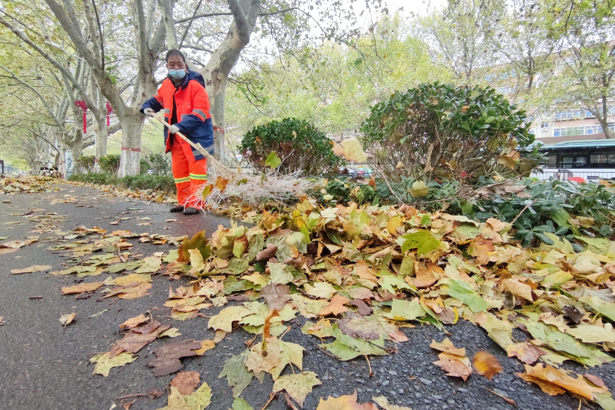 ·立冬寒潮来袭叶落满地 郑州环卫工人凌晨3点半开工战“落叶”