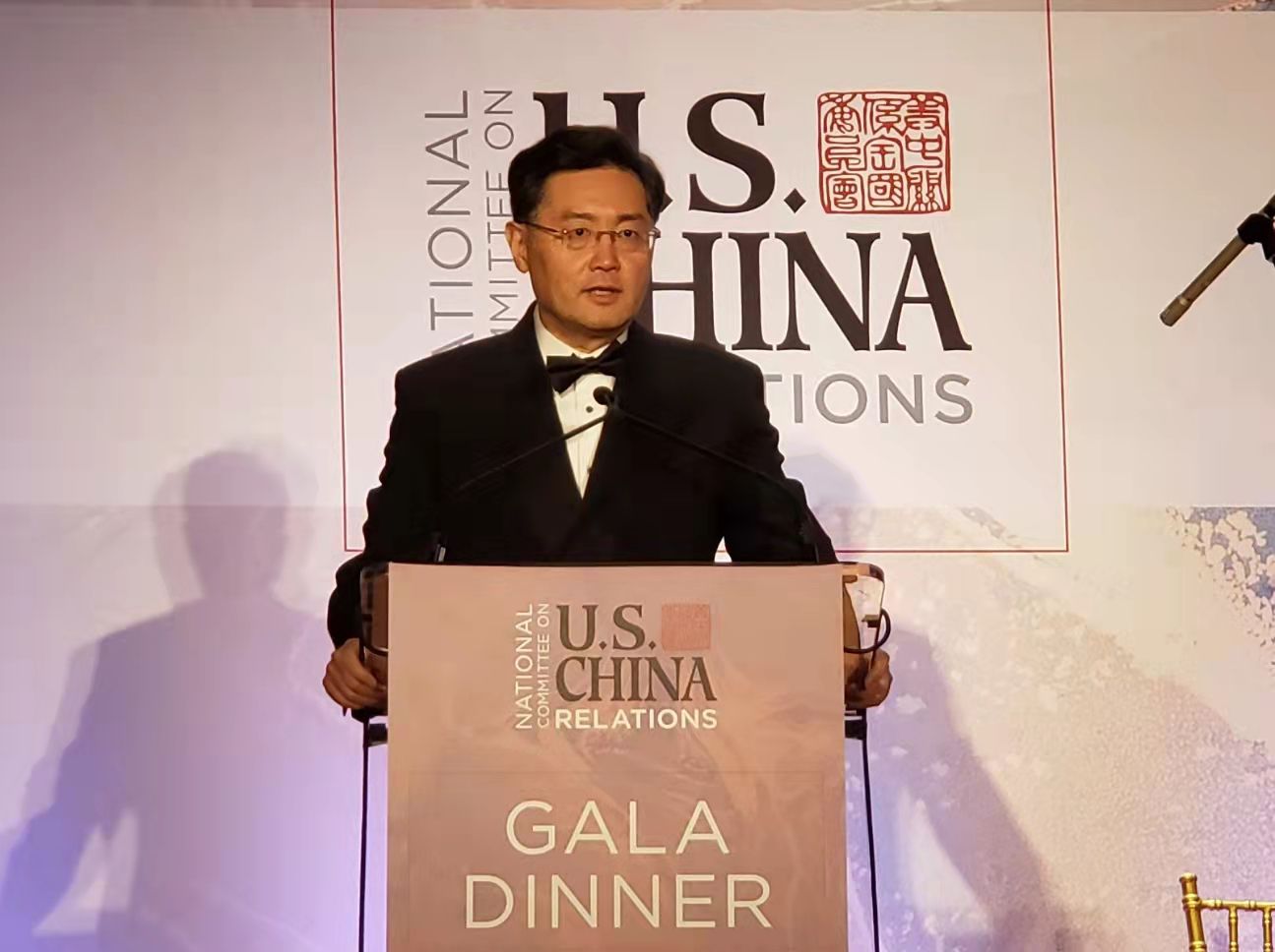 11月9日,美中关系全国委员会在纽约举行2021年度晚宴。中国国家主席习近平和美国总统拜登分别致贺信,由中国驻美国大使秦刚和美中关系全国委员会董事会主席雅各布·卢分别宣读。