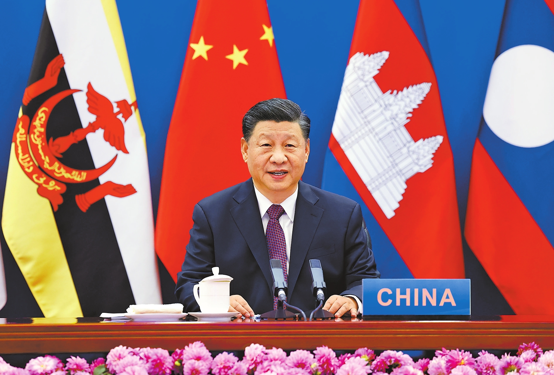 11月22日上午,国家主席习近平在北京以视频方式出席并主持中国—东盟建立对话关系30周年纪念峰会,发表题为《命运与共共建家园》的重要讲话。新华社记者黄敬文摄