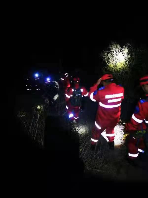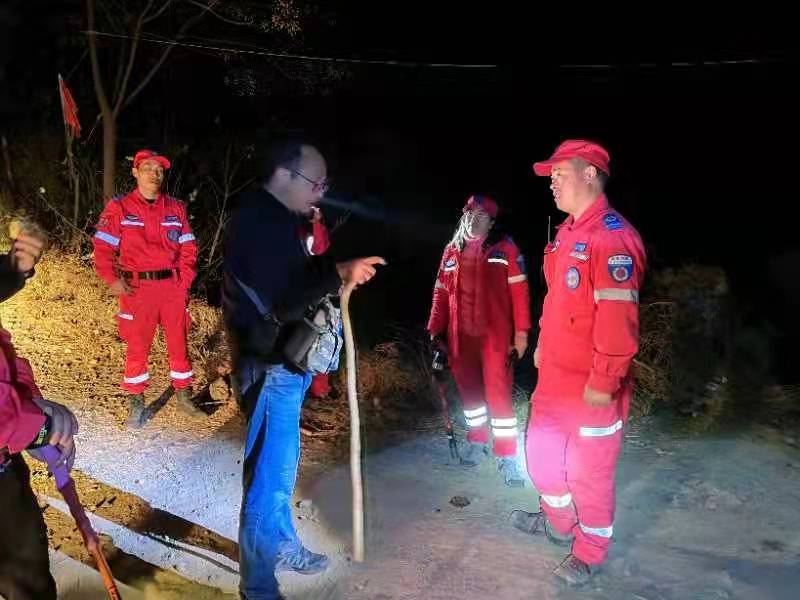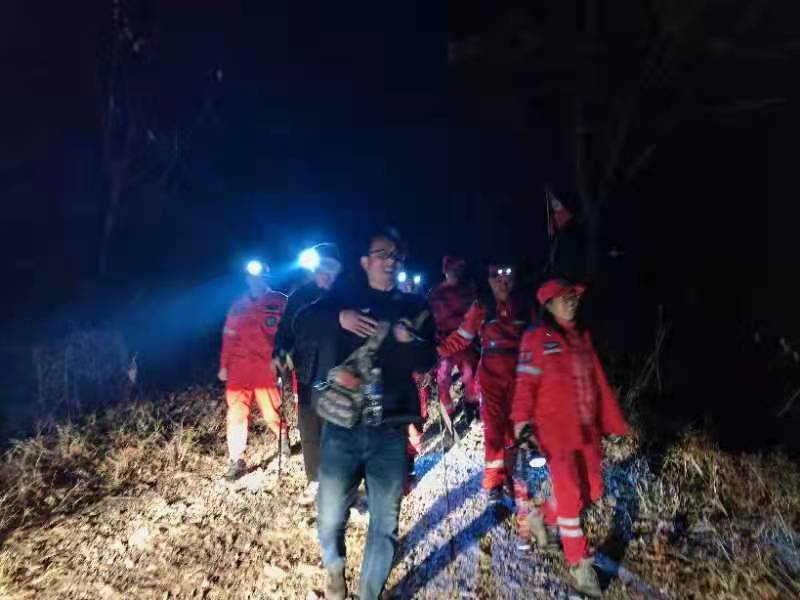 三名队员集结后携带两部对讲机先行上山,随后又有两名队员从思礼方向前往接应。二十一点左右,先行到达的两名队员找到了被困人员,给被困人员补充营养后带领其安全返回。