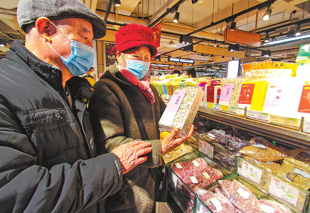 1月8日,市民在南阳市区一家大型超市选购腊八粥食材。