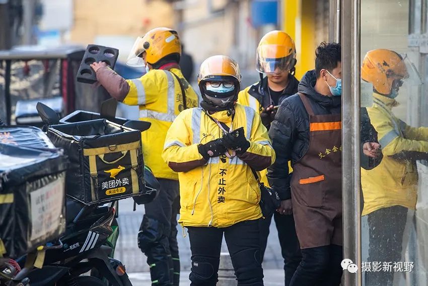 “受降路”上商铺林立,一家饭店门前有很多外卖小哥。
