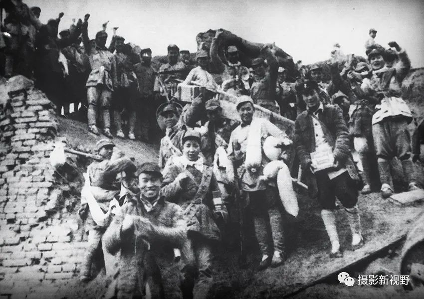 这是解放汤阴时解放军用炮火轰开城垣东北角的一个约宽20米的缺口,解放军战士越过战壕,登上了城垣。(翻拍于解放汤阴纪念馆)