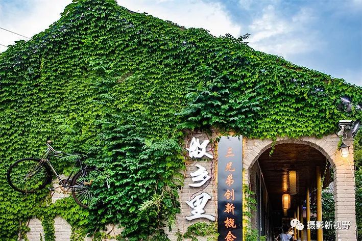 这是县城边一农村新开的“故乡里”民宿,房上爬满绿藤。