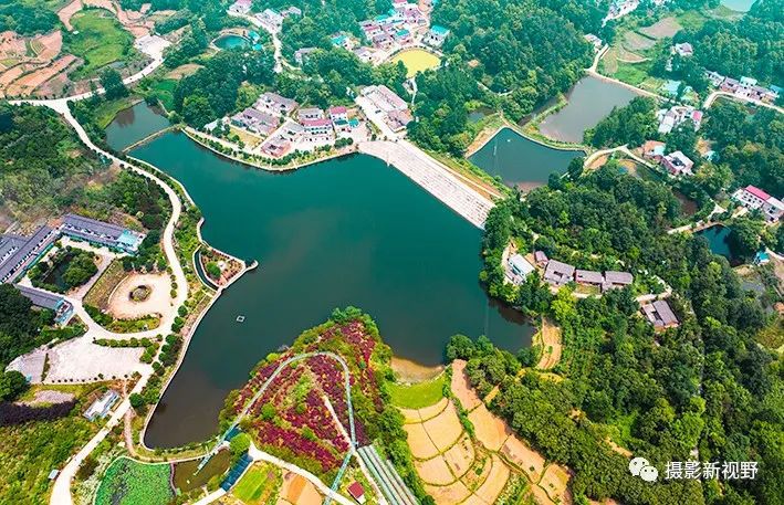 革命老区新县,田园如诗,山水如画。通过全域旅游发展,山村面貌大变样。高空鸟瞰杜洼村,这里“奇龙岭民俗文化生态园”里的农业观光园、民宿,形成了一幅美丽的画图。(王天定 图/文)
