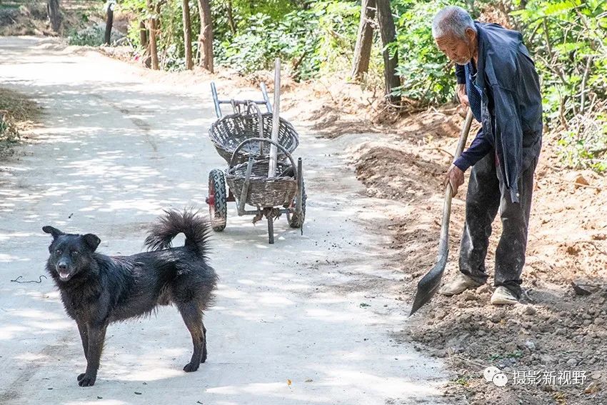 黄河生态廊道修到赵里河村后,这里村民组与村民组之间的道路也硬化了。这位年已7旬的大爷带着小狗,推着小车正在给刚修的水泥路垫路肩。