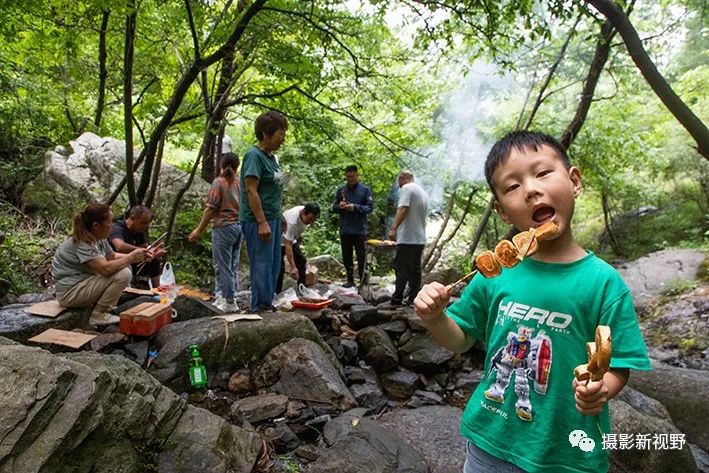 外地游客来到山沟沟,听泉鸣,吃烧烤,流连忘返,乐不思归。