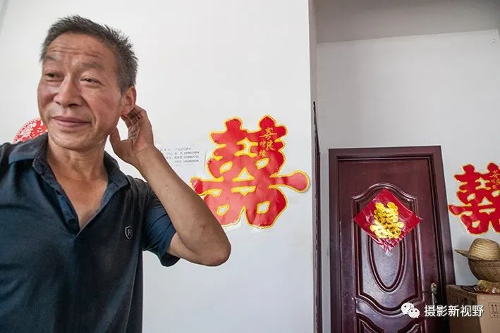 这位脱贫户叫何振朝,今年55岁。他的爱人半身不遂,搬到山下后看病方便多了。今年,他给儿子娶了媳妇,家里贴了很多“喜”字。