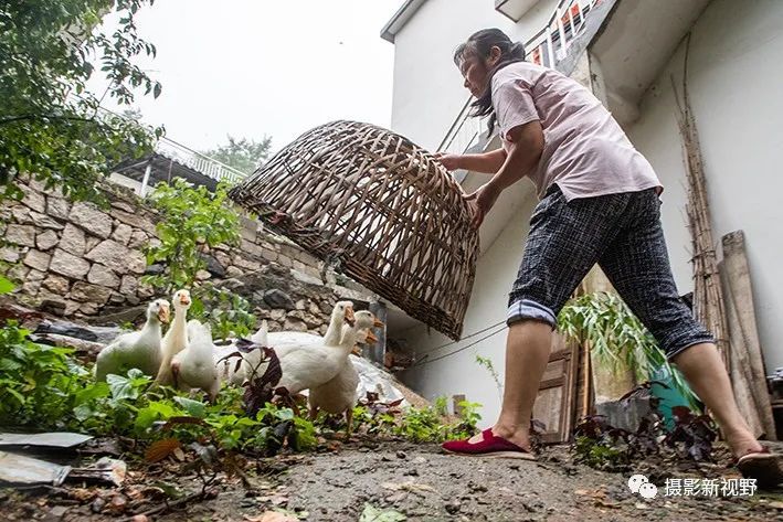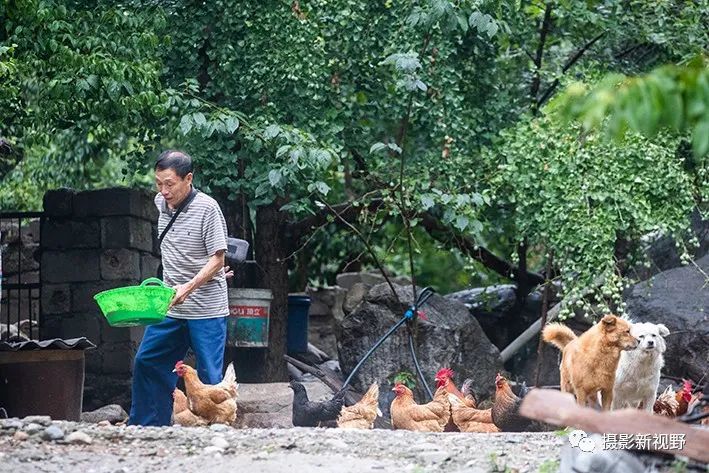 村民忙了。这位大伯在古银杏树下养了很多土鸡,用来招待游客。