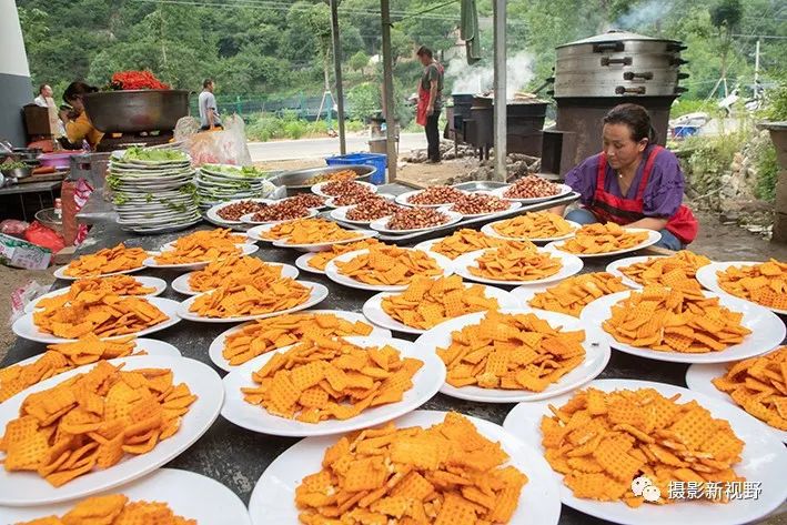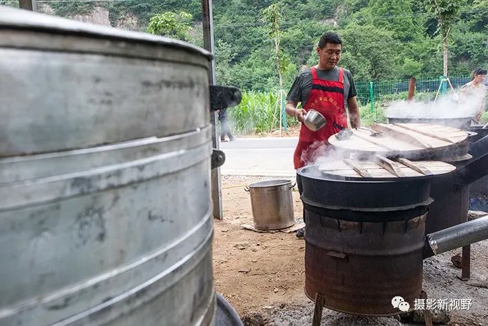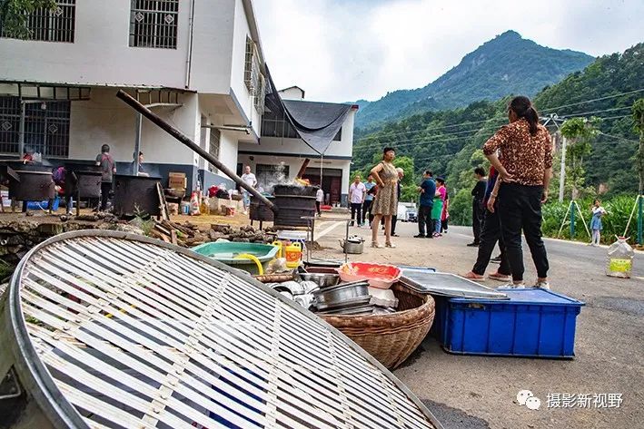 山村路边支起了大锅,这里就是“满月宴”的露天大厨房。
