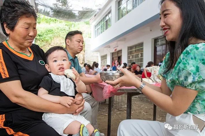 大妈、大嫂带着可爱的小宝宝来吃“喜宴”,喜在心头。
