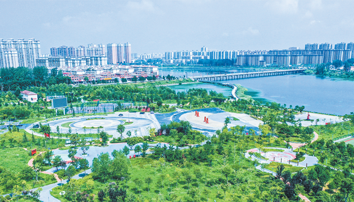8月1日,光山县官渡河盛湾公园一角。据了解,该公园是集休闲、健身、娱乐于一体的多功能城市公园,由河滩、滚水坝改造而成。近年来,光山县在官渡河两岸建成8座公园,打造山青、水绿、林郁、田沃、湖美、草茂的好生态,吸引了众多游客前来观光。谢万柏 摄