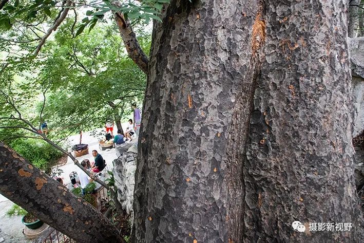 村里有棵千年榔榆树生长很旺盛,树下坐了很多避暑人。