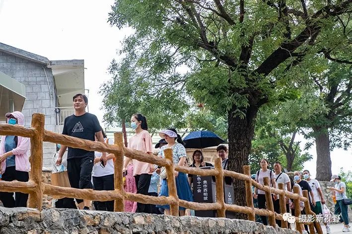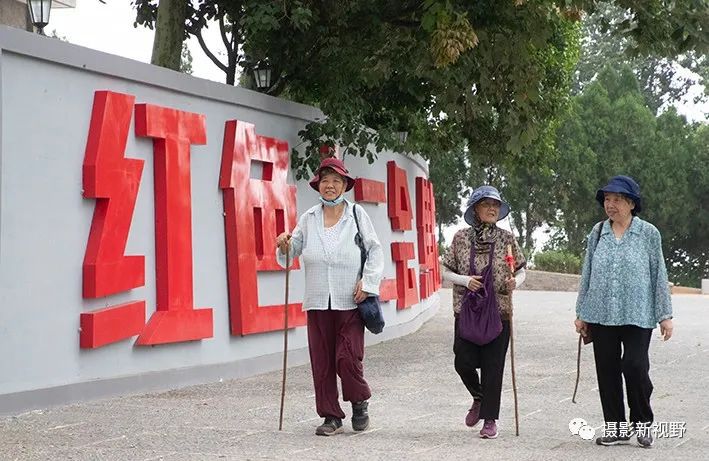 山下大妈拄着棍子步行来了,这里是她们心中向往的红色圣地。