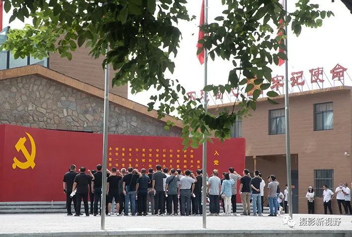 很多党员来了,他们在鲜艳的党旗下重温入党誓词。