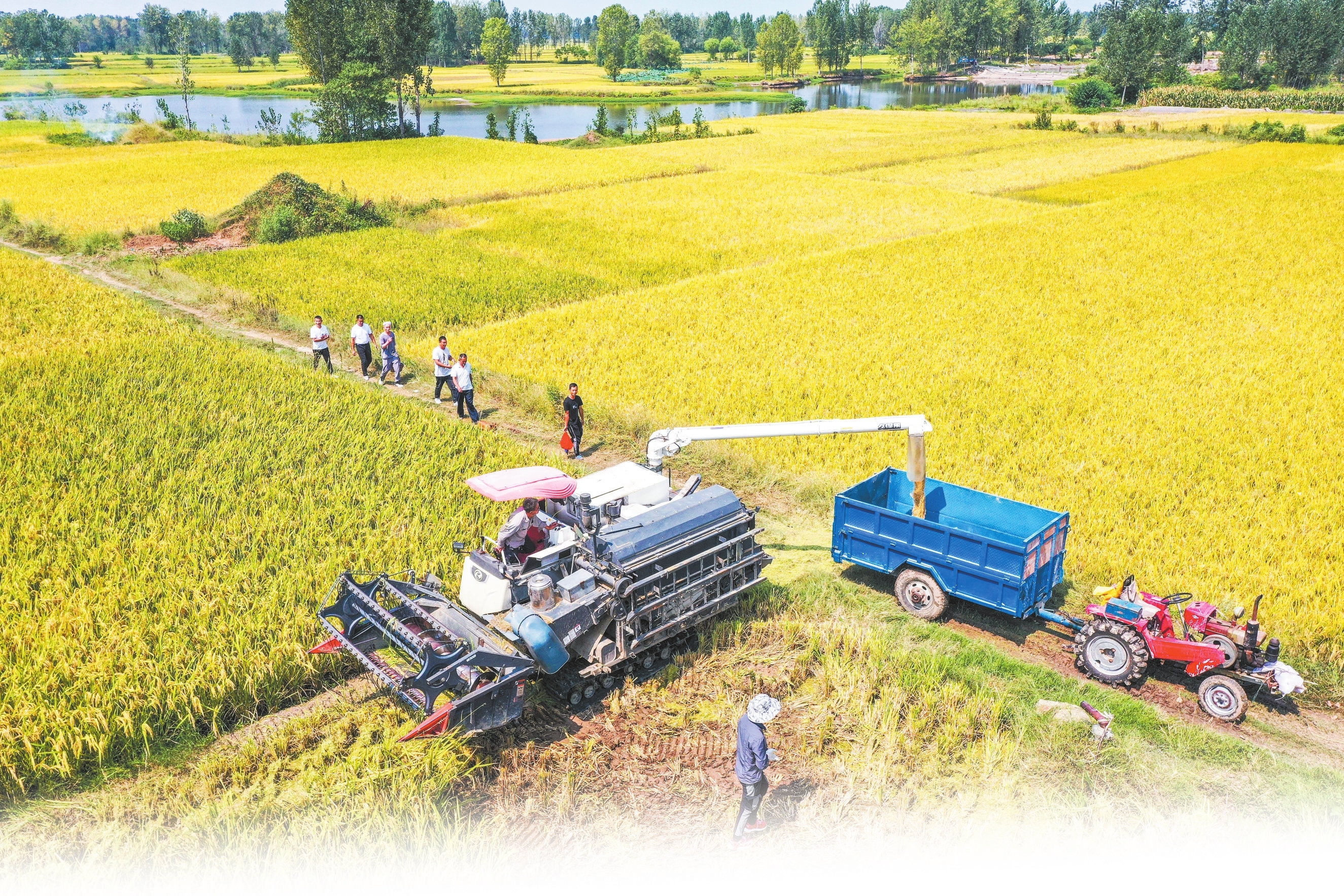 9月10日,农机在正阳县大林镇漫塘村的稻田里作业。近日,正阳县30万亩水稻陆续成熟,村民正在趁天抢时收割水稻。本报记者 黄华 通讯员 高万宝 摄