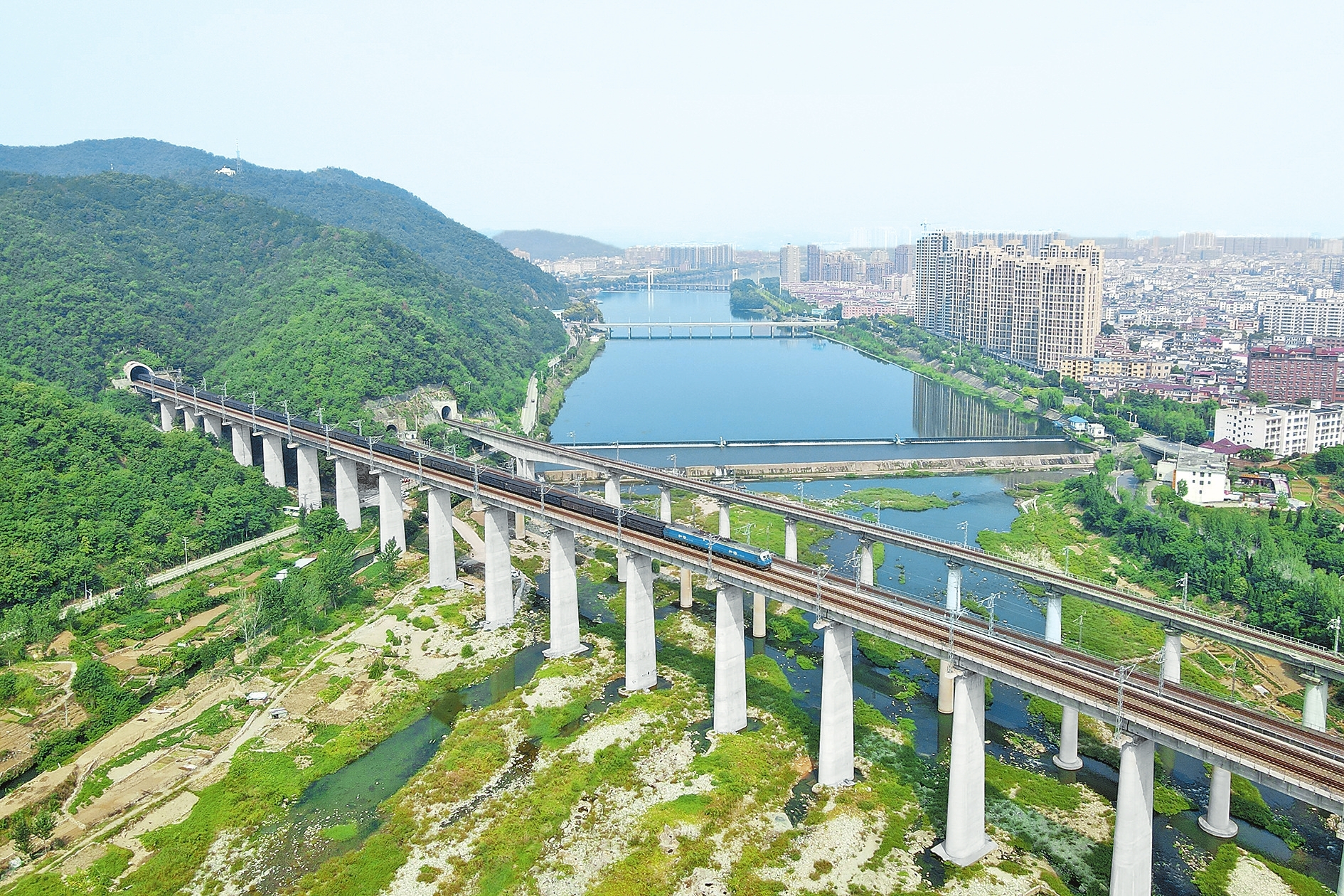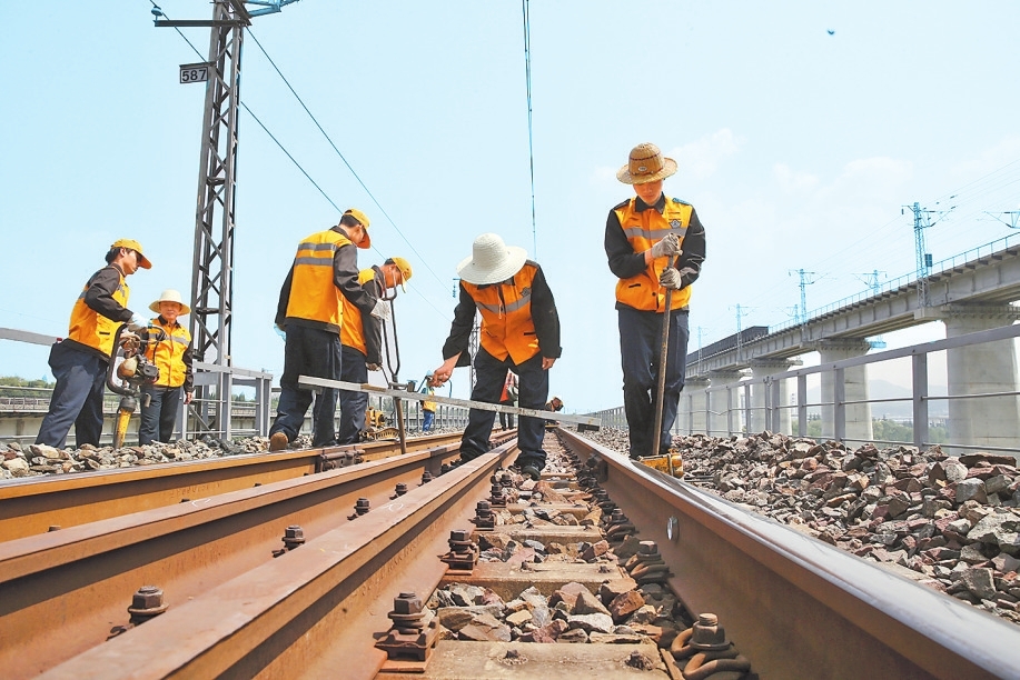 9月14日,中国铁路郑州局集团有限公司南阳工务段桥隧工人正对宁西线西峡隧道、鹳河桥进行检查维护作业。据了解,在南阳工务段桥隧检查工区,该段工人负责155公里管辖里程内201座桥梁、20座隧道和704座涵洞的日常周期性检查。他们用精湛的技术排除桥隧隐患,确保线路安全畅通。本报记者 王铮 摄