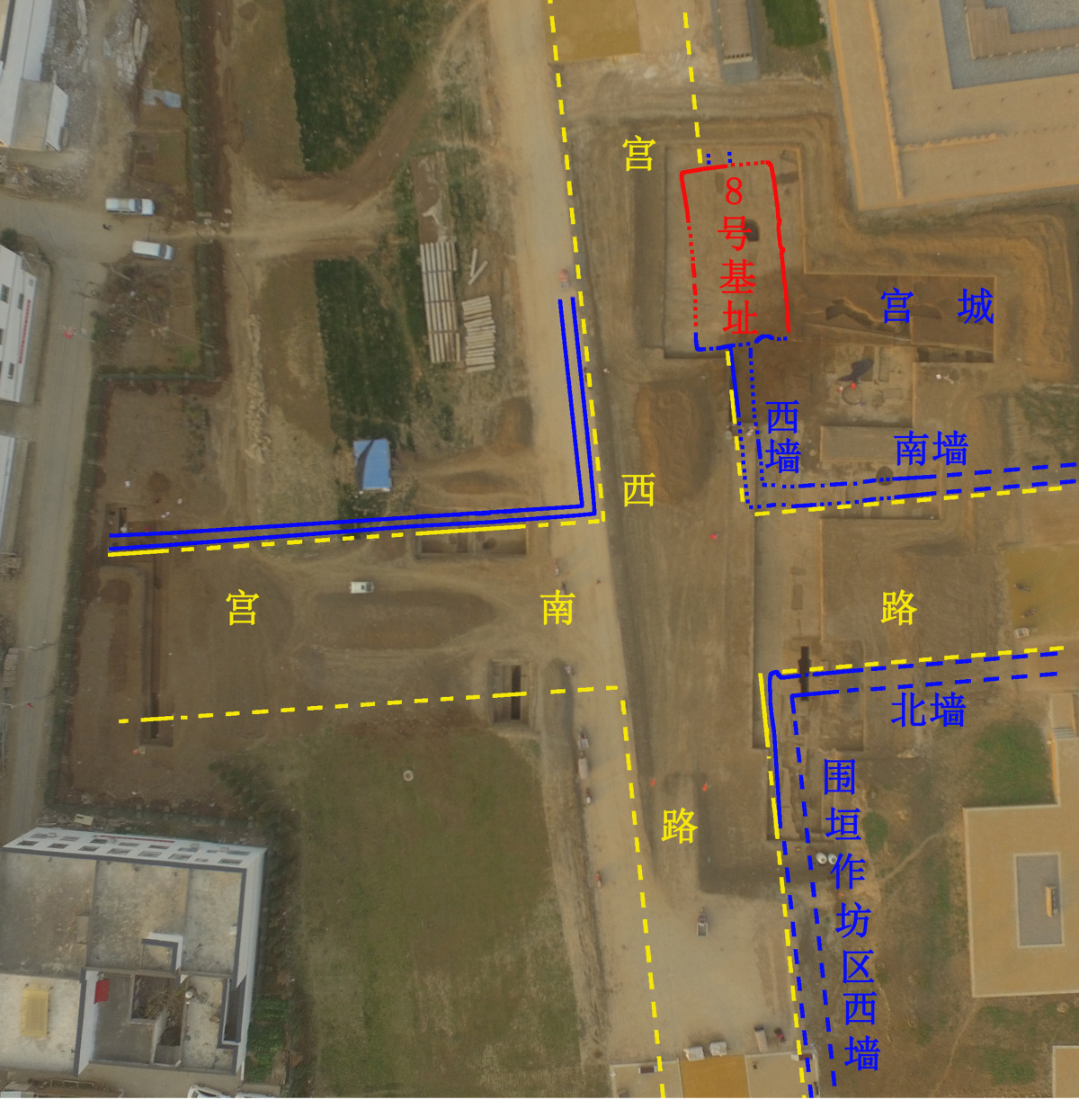 宫南路、宫北路向西延伸分别达470余米、410余米,均超过宫城的东西宽度(295米左右),且继续向西延伸,考古人员推测作坊区、宫殿区、祭祀区以西至少各存在一个分区。