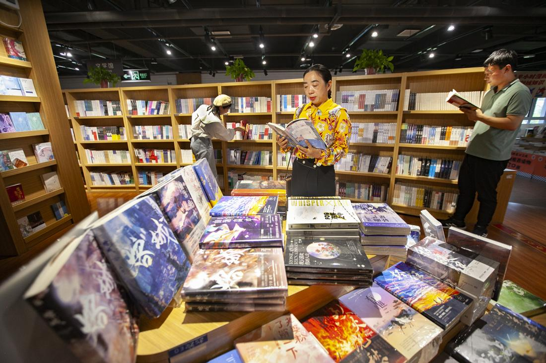9月21日,河南省焦作市博爱县新华书店,顾客在阅览书籍。