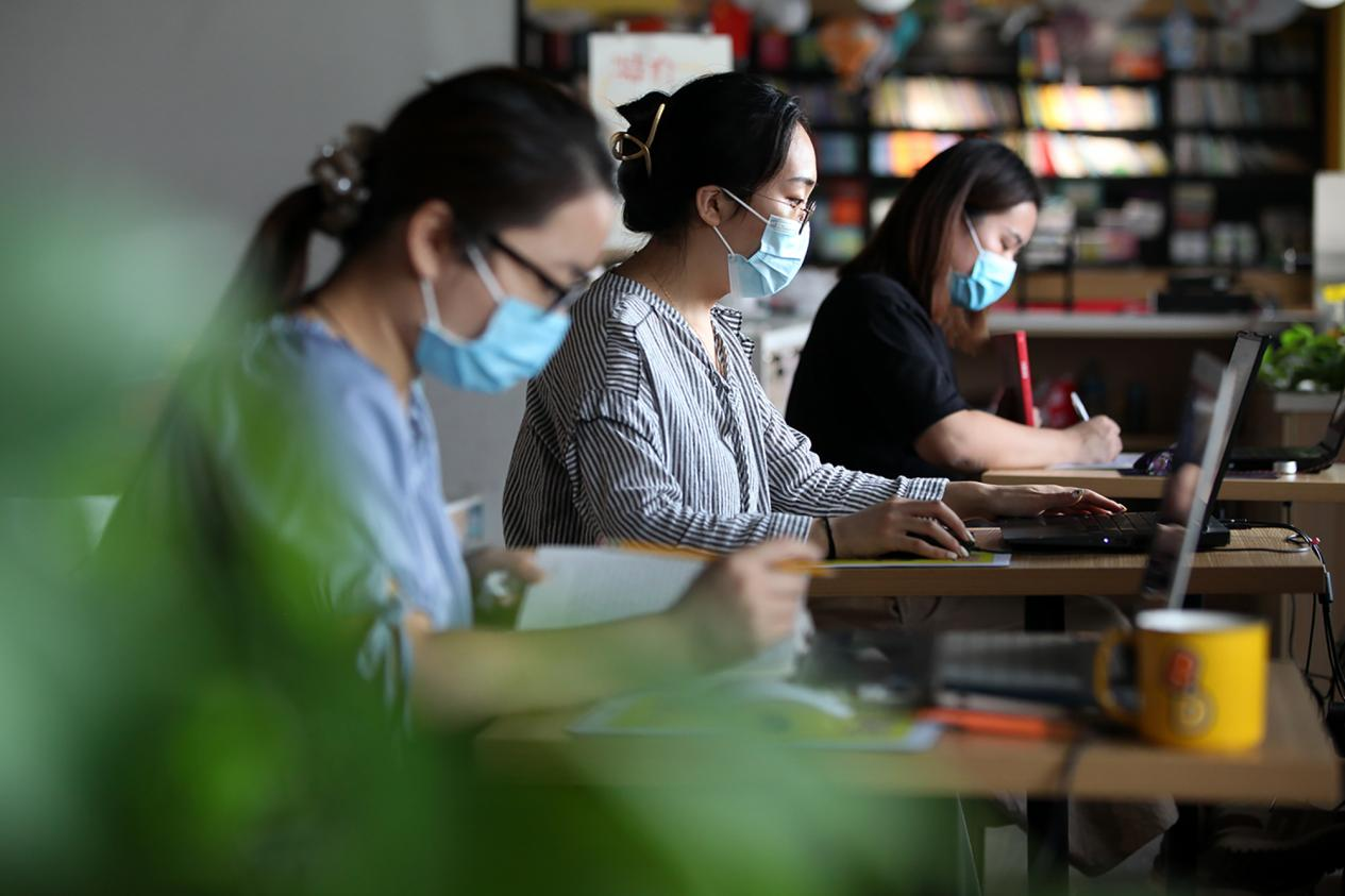 博爱县新华书店,读者在书城阅读区学习。