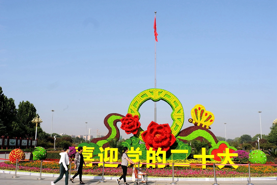 9月26日,济源产城融合示范区天气晴好,世纪广场布置一新,花团锦簇,喜迎国庆佳节。(大河特约摄影师贾书琛文/图)
