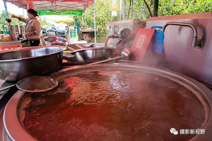 梨园里还支起很多大锅,村民们用传统手艺就地熬制梨膏糖。
