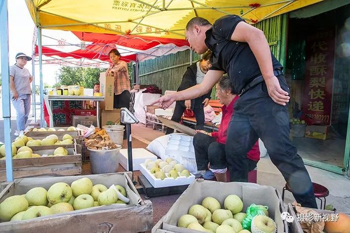 很多外地人慕名而来,购买刚从树上摘下的鲜梨。