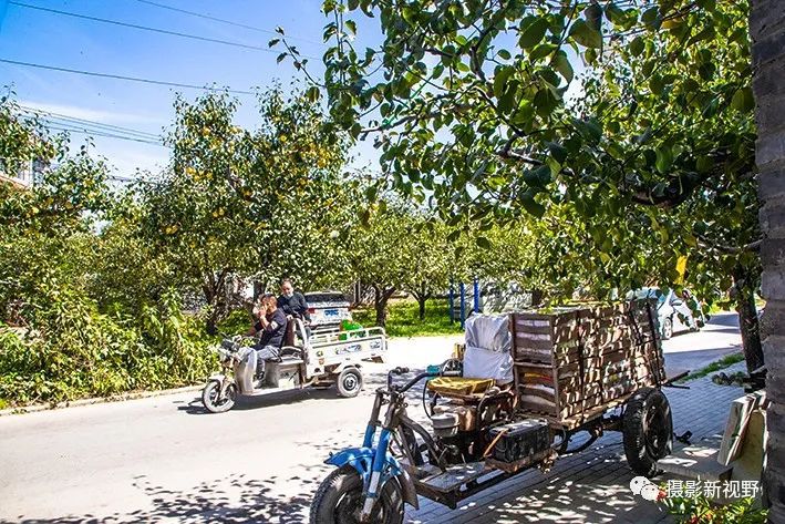 梨园中宽阔的道路上,穿梭着一辆辆装满酥梨的三轮车。