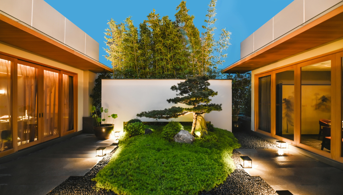 这种东方气质和自然美学,在数福餐厅芝麻街店也体现得淋漓尽致。它秉承“东风袅袅返崇光,香雾空蒙月转廊”的意境,从入门到走道、包房以及室外露台景观,大小空间,取形写意,借物造景,雅逸灵秀。坐在精心打造的空中庭院,目光所及,皆是诗意:听清风低语,与绿意相伴,早春看葱茏的青草,盛夏赏池中的荷花,秋日有通红的枫叶,冬季见漫天的飞雪,岁月可亲,人间值得。