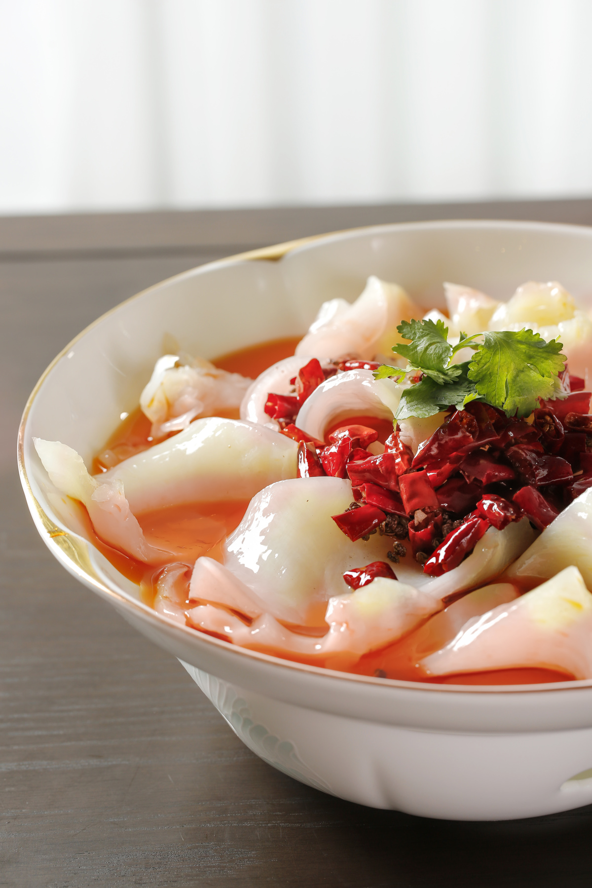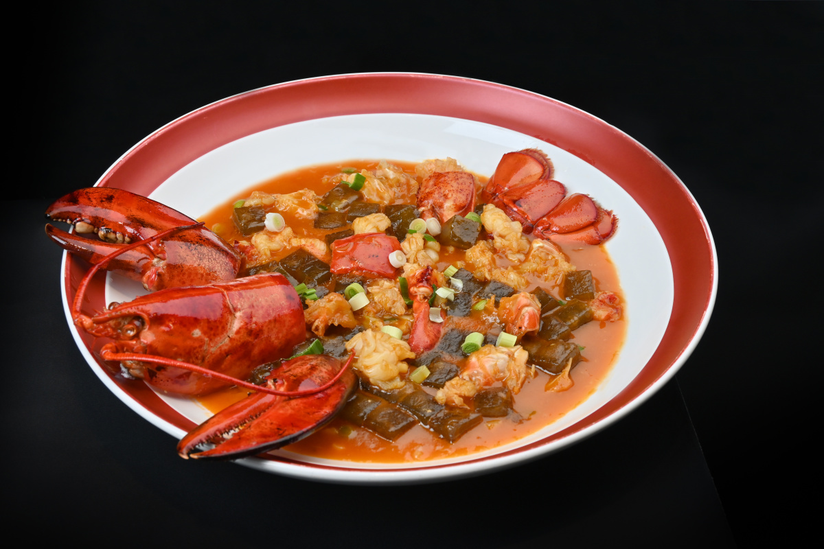 “烧”是豫菜经典技法之一。数福餐厅的麻辣凉粉烧波士顿龙虾,选取鲜活的波龙,结合新密特产超化凉粉一起烧制,麻辣鲜香的味道,Q弹的口感,别有一番滋味。