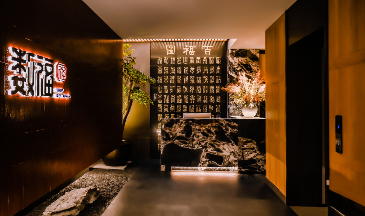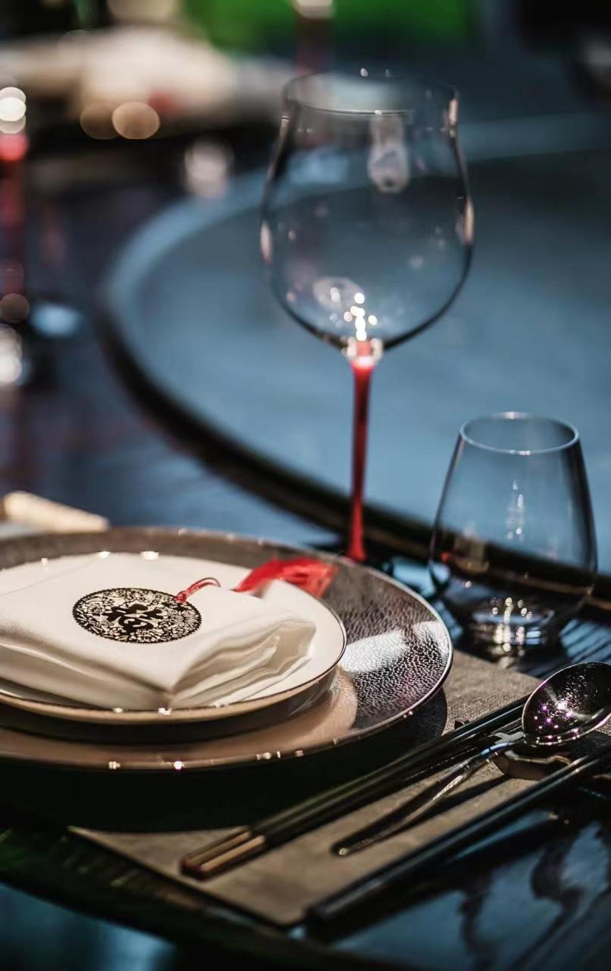 数福餐厅的格调,还体现在空间内充满艺术气息的摆件,茶桌上蕴含宁静禅意的菖蒲,玻璃砖后不经意间露出的一枝绿意;国际顶级品牌的餐具、酒具,精心挑选的洗手液、漱口水、香水……种种细节,营造出都市感与艺术感相呼应、高端商务气质与自然舒适氛围相融合的独特氛围。